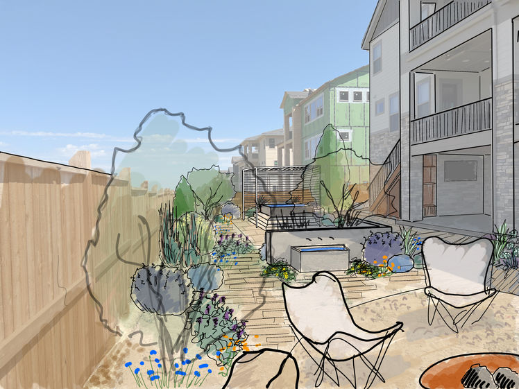 This project was for a small residence near a city park in Denver. The clients wanted spaces to entertain and relax while also being functional. Due to surrounding site conditions, much of the property experiences shade. This design uses natural materials and a low-water pallet to achieve an inviting and practical space.